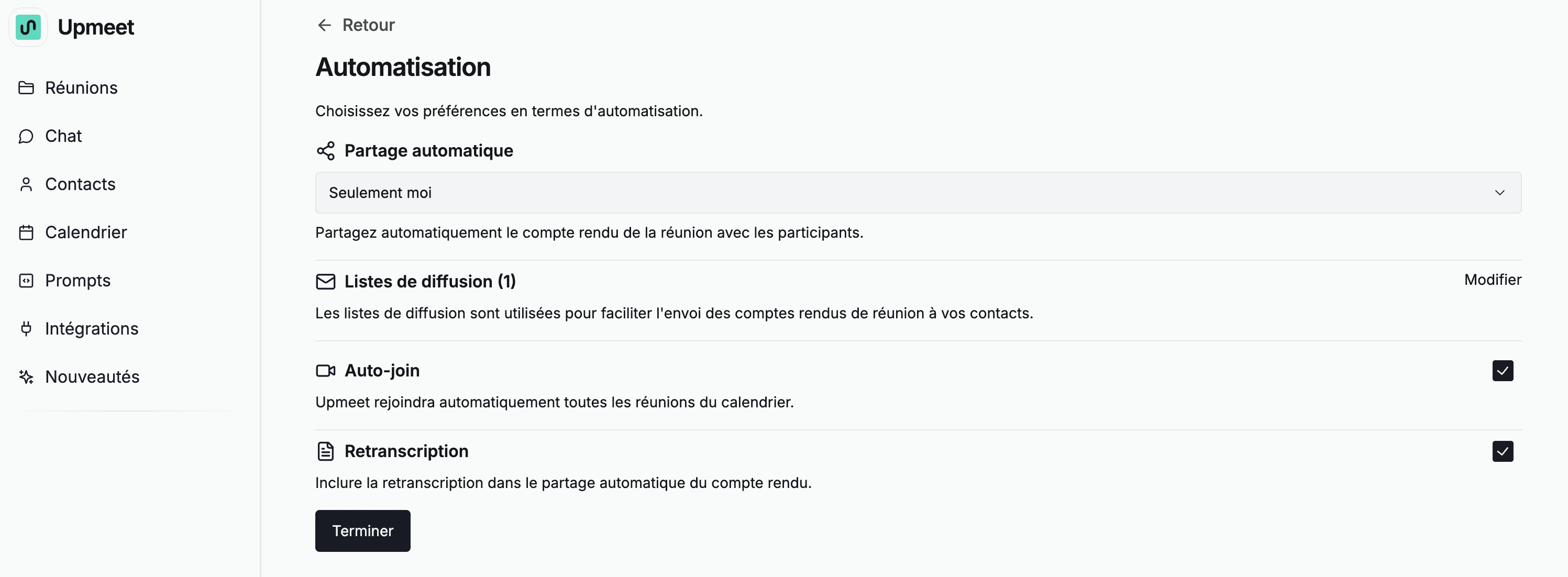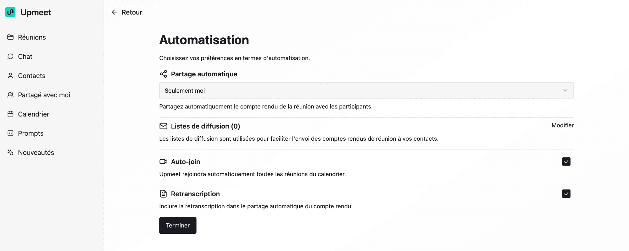 Upmeet peut ainsi partager automatiquement le compte rendu dès qu’il est généré.