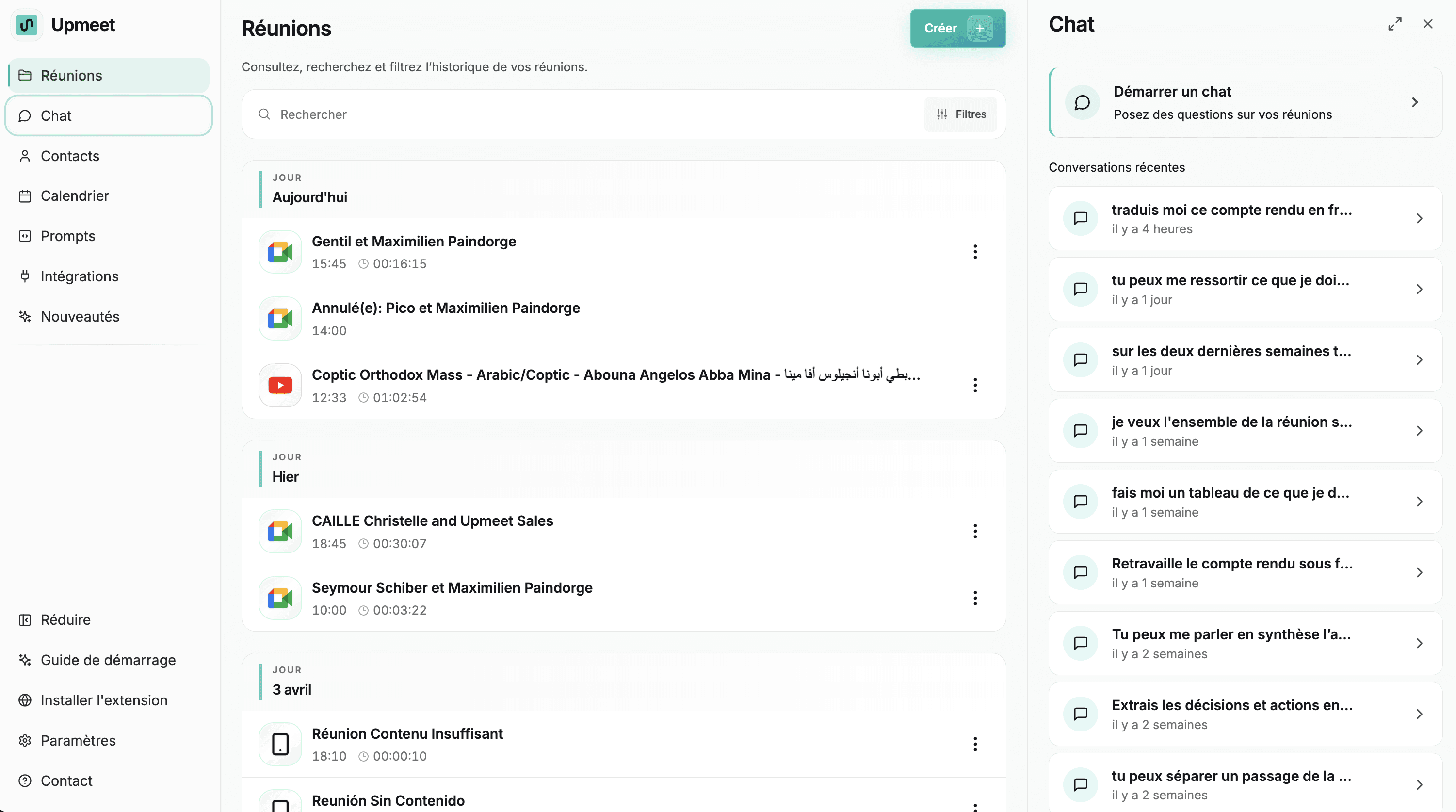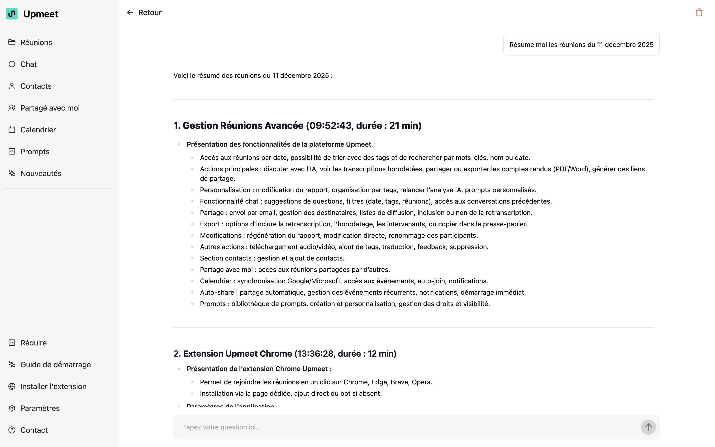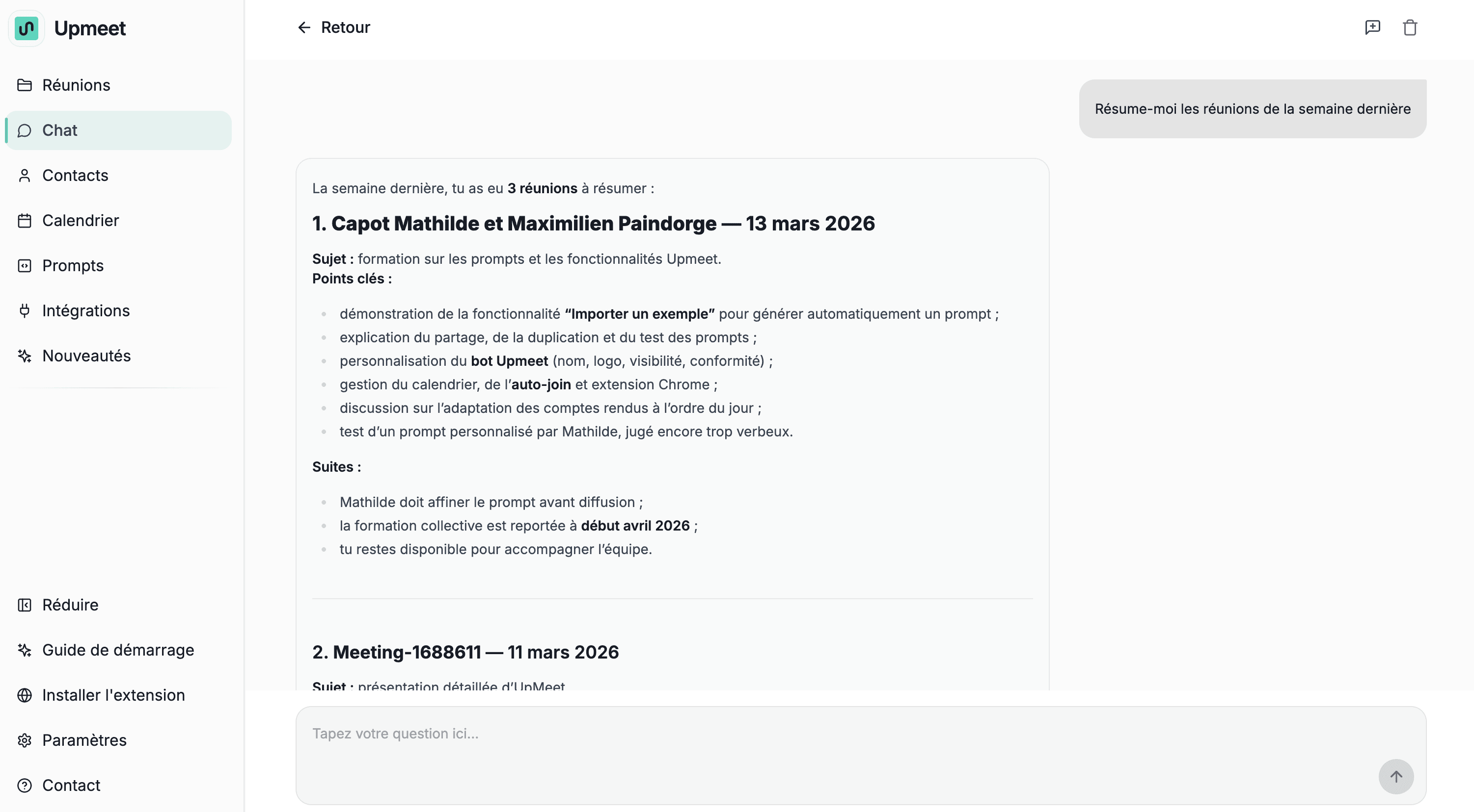 Le Chat IA est l’un des outils les plus puissants d’Upmeet pour analyser et comprendre vos réunions.