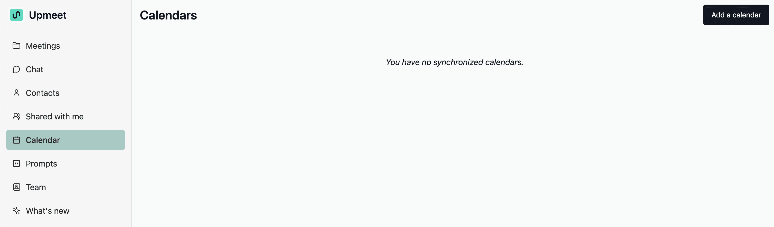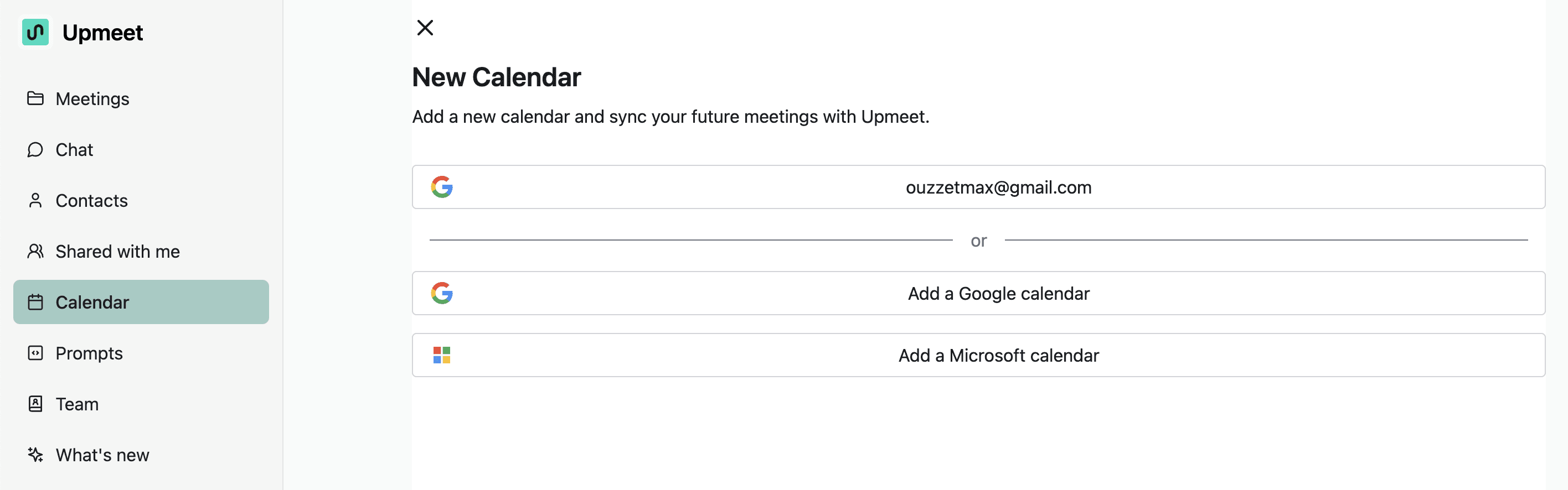 This page explains how to synchronize your calendar with Upmeet so that your future meetings are automatically detected, tracked, and prepared.