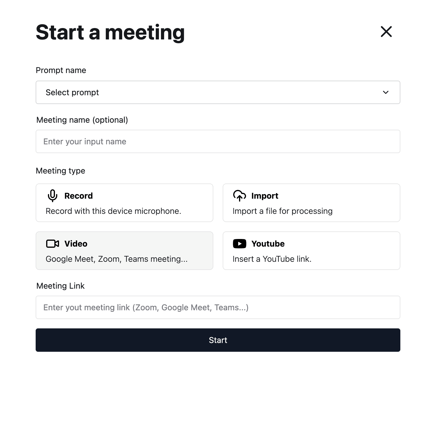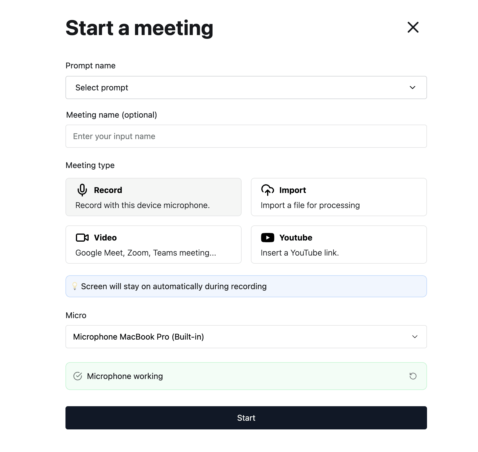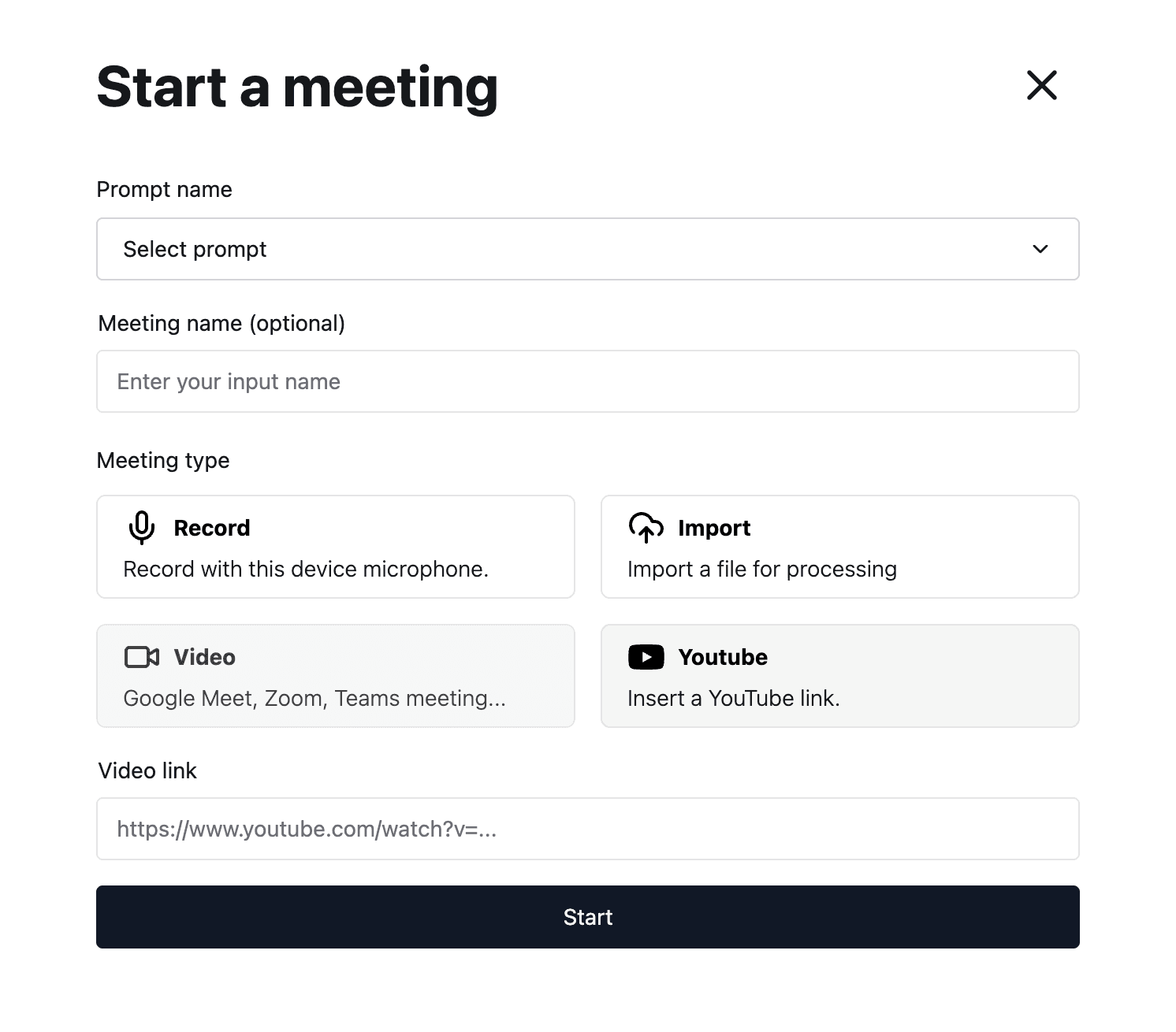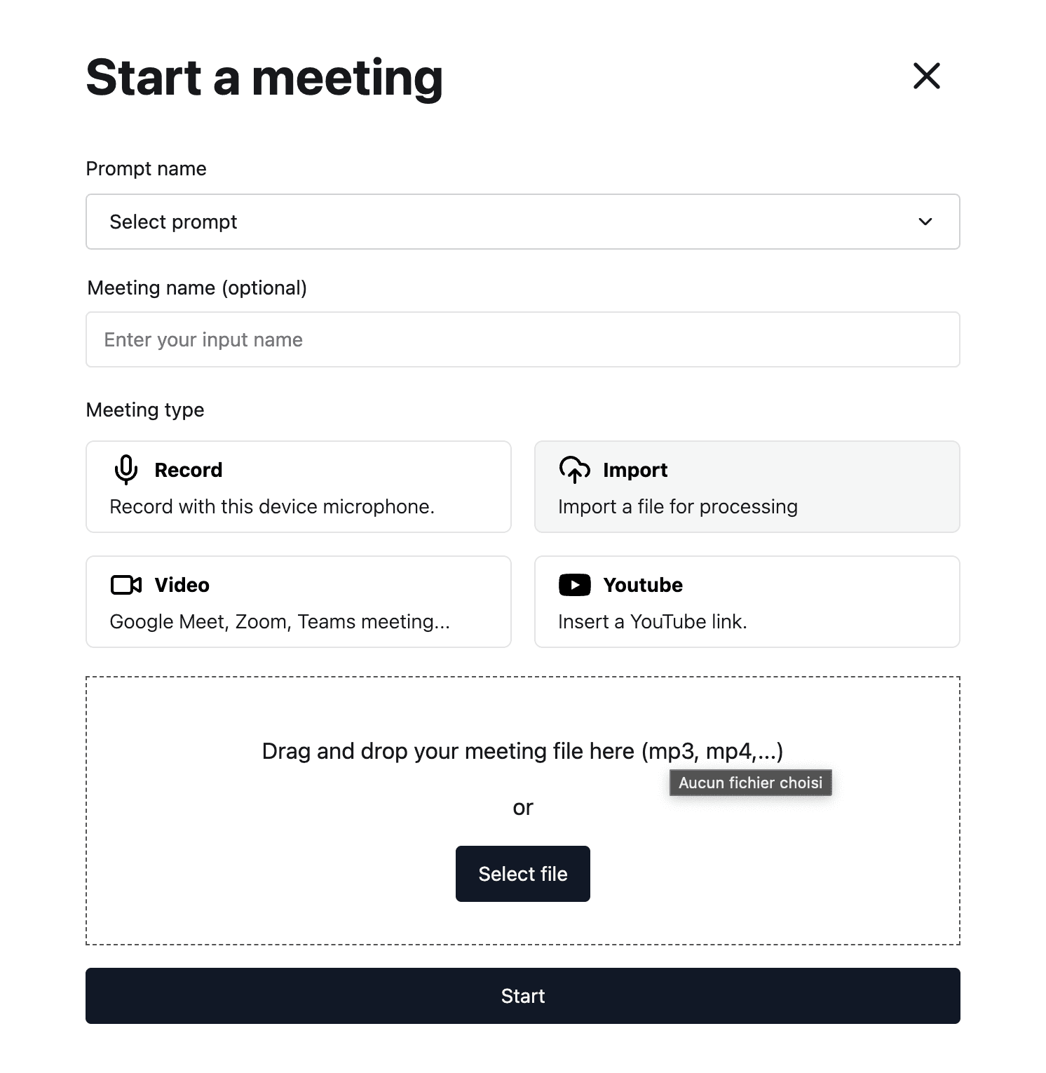 You can import an existing file (e.g., MP3, MP4) to immediately obtain a transcription and summary.