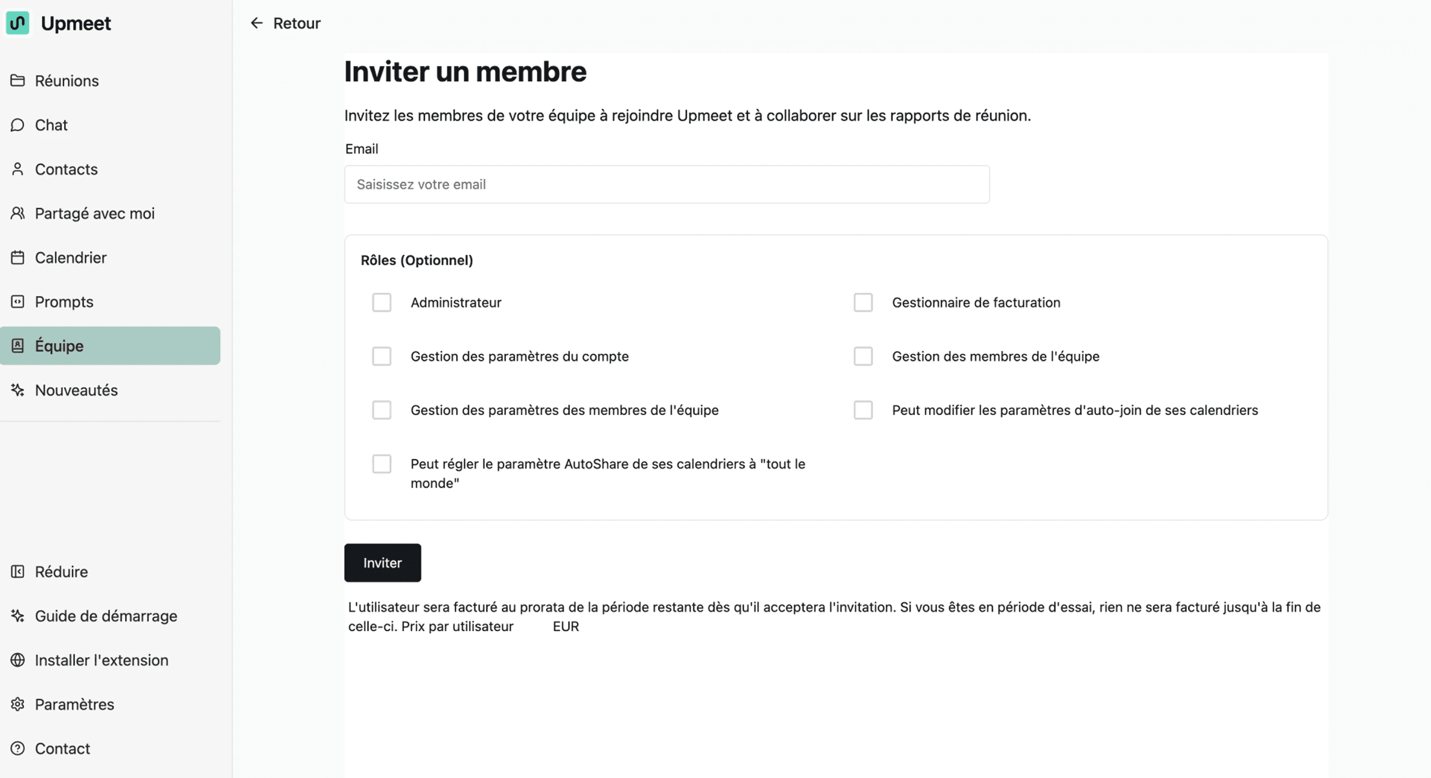 En cliquant sur Inviter, l’utilisateur sera facturé au courant de la période restante dès qu’il acceptera l’invitation.