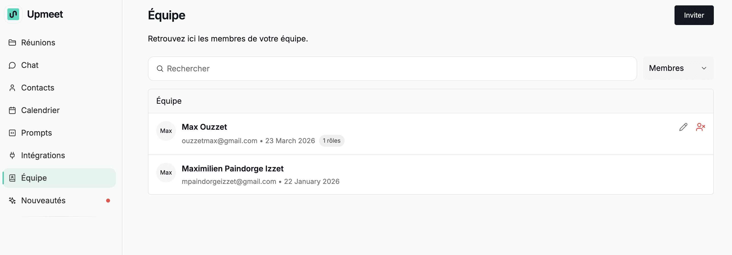 Cela permet d’inviter les membres de votre équipe à rejoindre Upmeet et à collaborer sur les rapports de réunion.