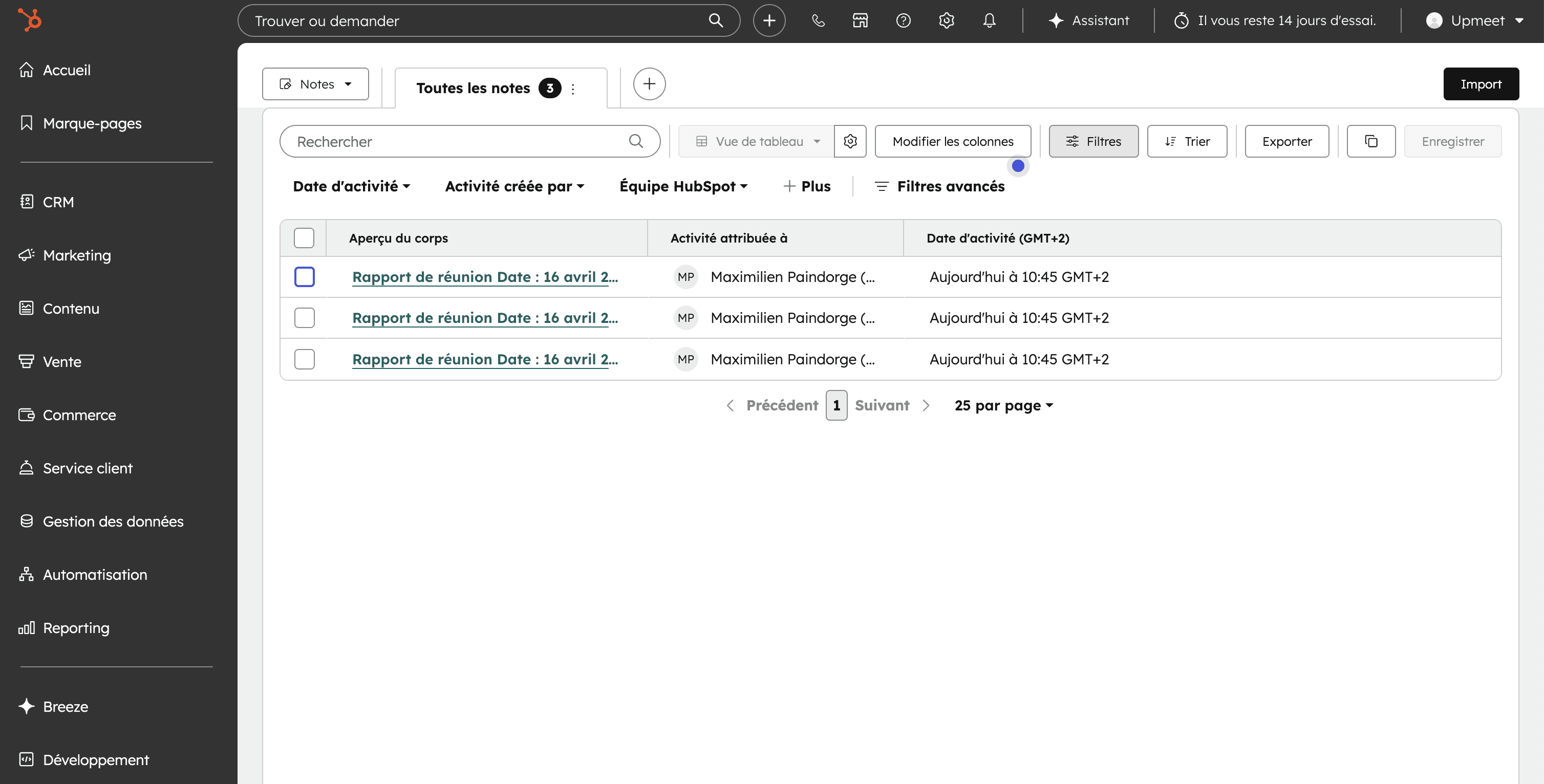 📄 Consulter les comptes rendus de réunion dans HubSpot