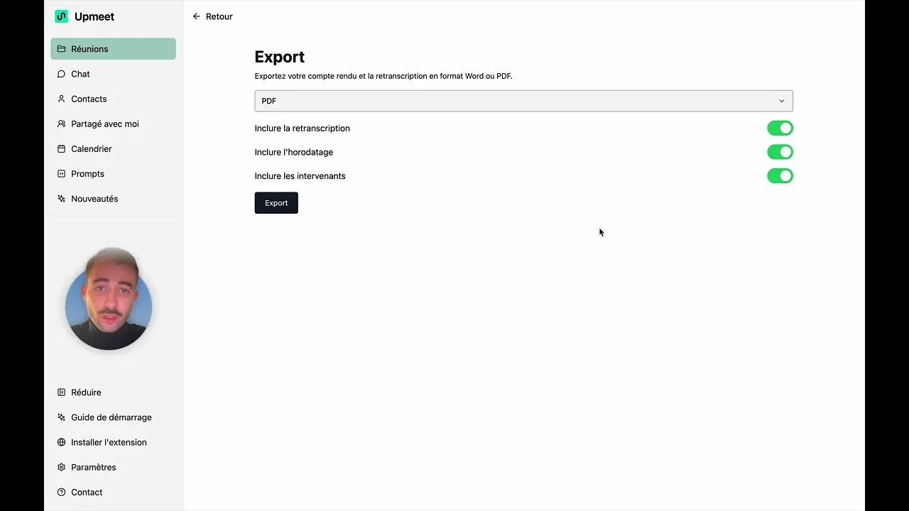 📄 4. Exporter votre réunion (PDF ou Word)